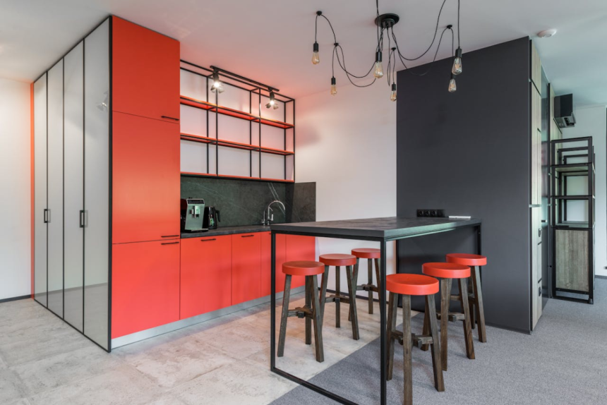 - Тип крепления — подвесные люстры подойдут на кухню с высокими потолками. Они могут быть с плафонами из любого материала, но практичнее стеклянные, пластиковые или металлические.