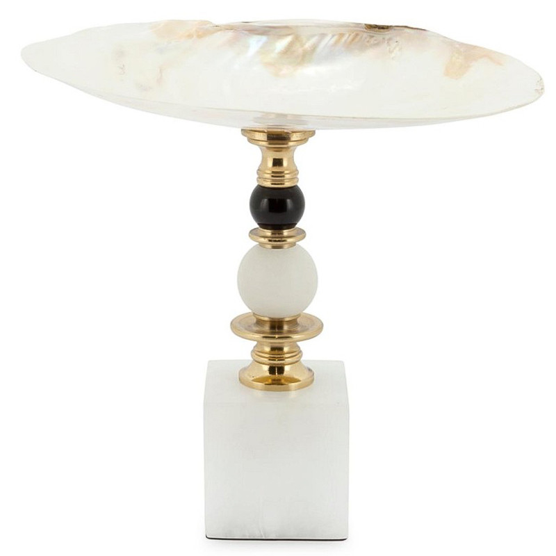 Ракушка Kabibi на латунно-белом алебастровом основании, сфера из черного хрусталя.