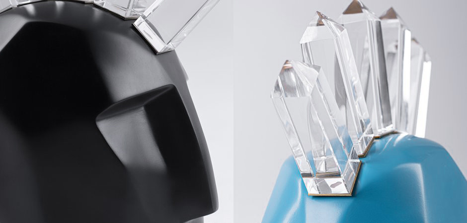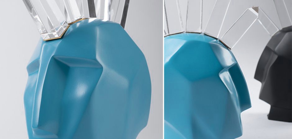 Head Trip Sculpture. Выполнен в Калифорнийском, Фьюжн стилях. Создателем этого аксессуара является Келли Уэрстлер (Kelly Wearstler), известный на весь мир американский дизайнер, модельер и писатель. Маленькая Головка с кристаллическим Ирокезом - скульптура Келли, которую она уменьшила, чтобы ее можно было легко перемещать и ставить на нужное Вам место. Ирокез в виде кристаллов смотрится ярко и блестяще, в полном смысле слова - в нем переливаются различные блики от освещения. Головка с кристаллическим Ирокезом добавит блеску и сказочности вашей комнате. Можете выбрать любой из пяти цветов: серебристый, черный, белый, бирюзовый и золотистый. Отлично подойдет для гостиной, комнаты, спальни, для офиса, кабина босса, директора, шоу-рум, студия, холл, прихожая, лаунж зона.