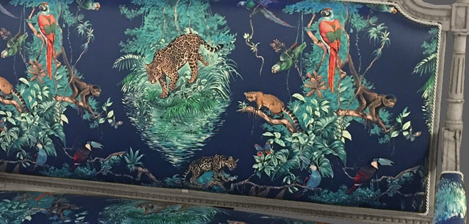 Антикварный Диван Canape в обивке Hermes Equateur imprime