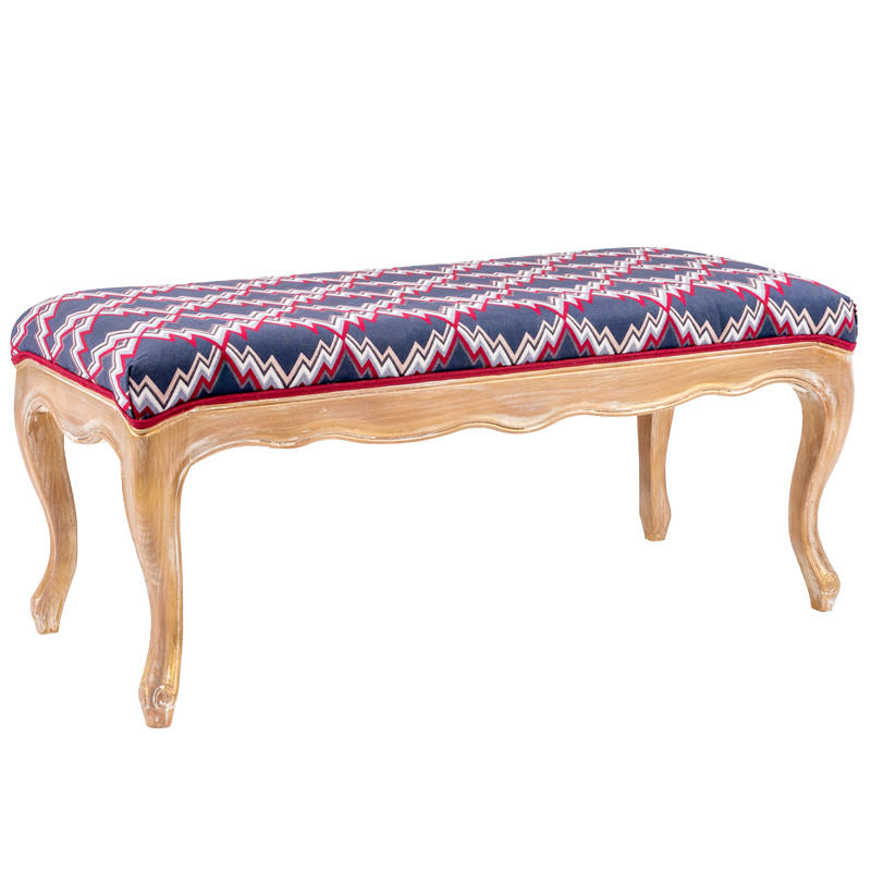 Узор Ikat, который красуется на этой банкетке, словно живой фонтан чередующихся цветов и форм, призывает нас забыть о реальном мире и окунуться в мир сказки.