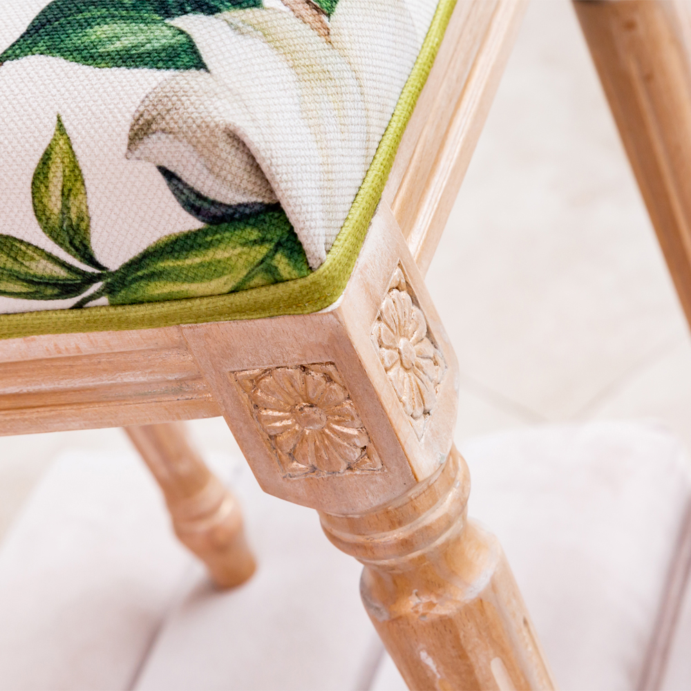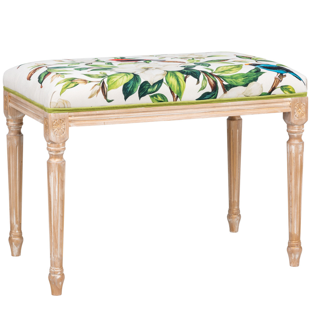 Банкетка из натурального бука золотистая с изображением птиц и цветов Blooming Bird