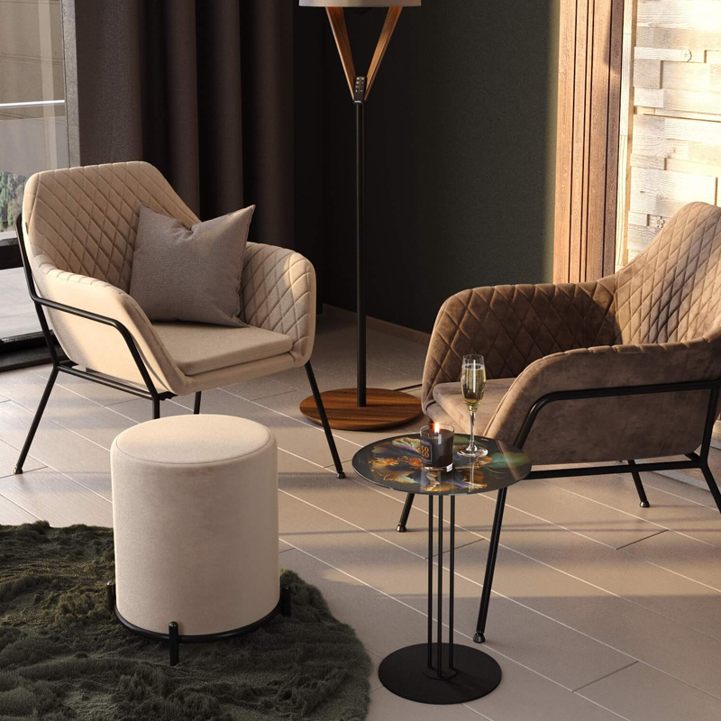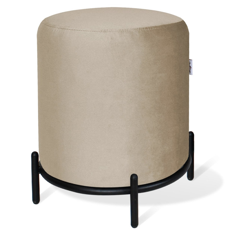 Банкетка круглая бежевый велюр на 4-х металлических ножках черного цвета SANJAY