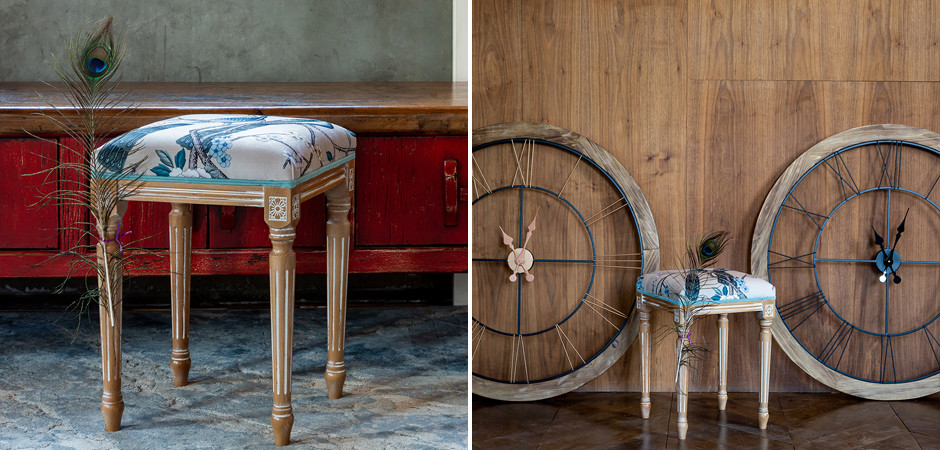 Банкетка с синими павлинами Emperor's Bird 34 см