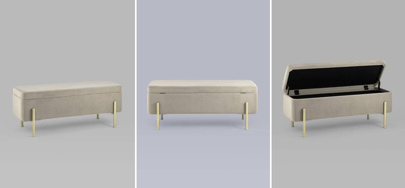 Банкетка с ящиком бежевый велюр Sanjay Velour
