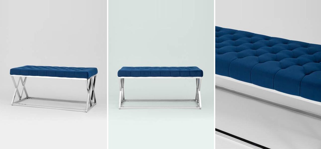 Синий велюр, источник эстетической благодати, обвивает каждую деталь банкетки, словно элегантное платье. В нём присутствует пленительная мягкость и нежность, переносящая нас в мир элегантности.