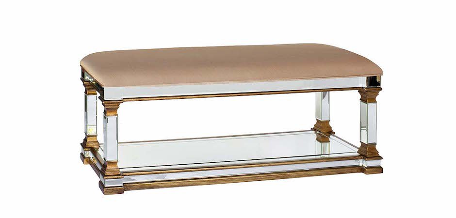Зеркальное основание этой банкетки отражает и умножает источники света, создавая ощущение пространственной глубины и магического излучения.