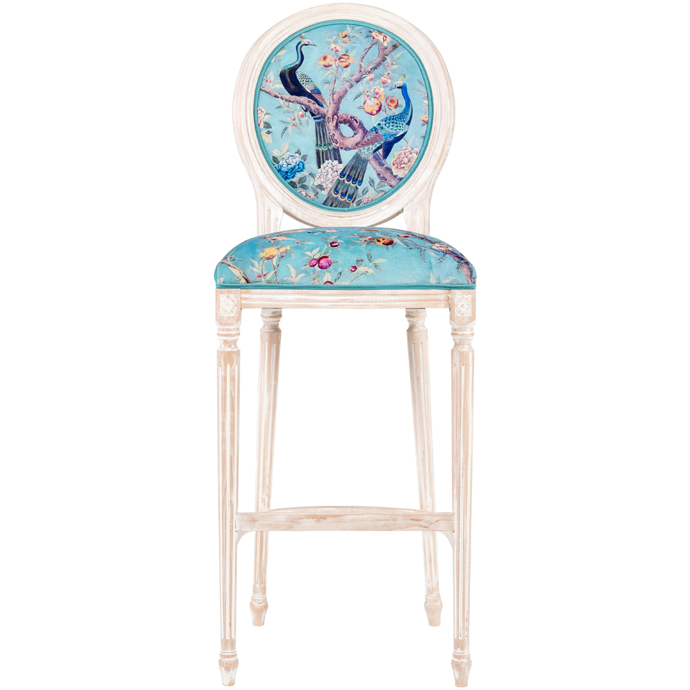 Барный стул из массива бука с изображением птиц и цветов Turquoise Beige Chinoiserie Garden Chair