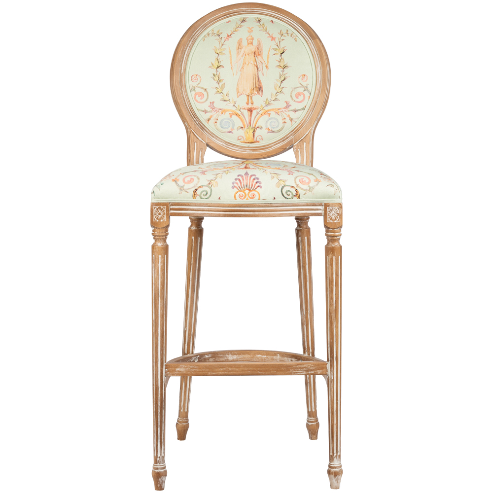 Барный стул из массива бука светло-зеленый с растительным орнаментом Raffael Angel Green Bar stool