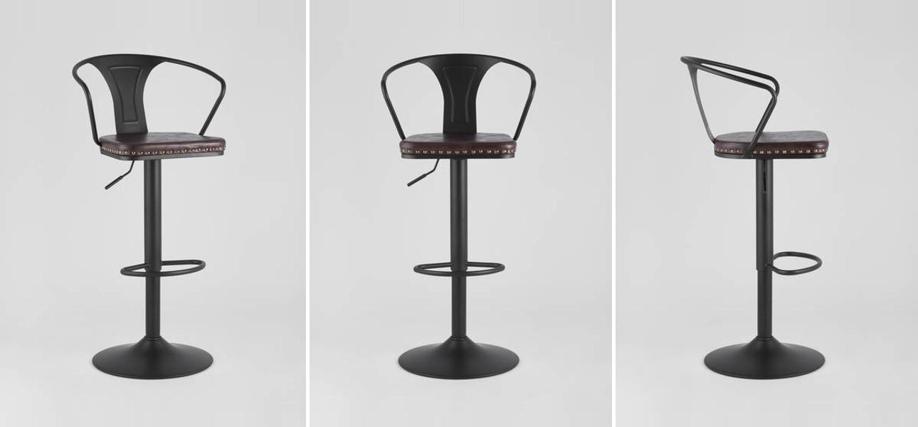 Купить барный Стул с Подлокотником Tolix Черный Матовый Металл Сидение Коричневая Экокожа – значит выбрать его за: