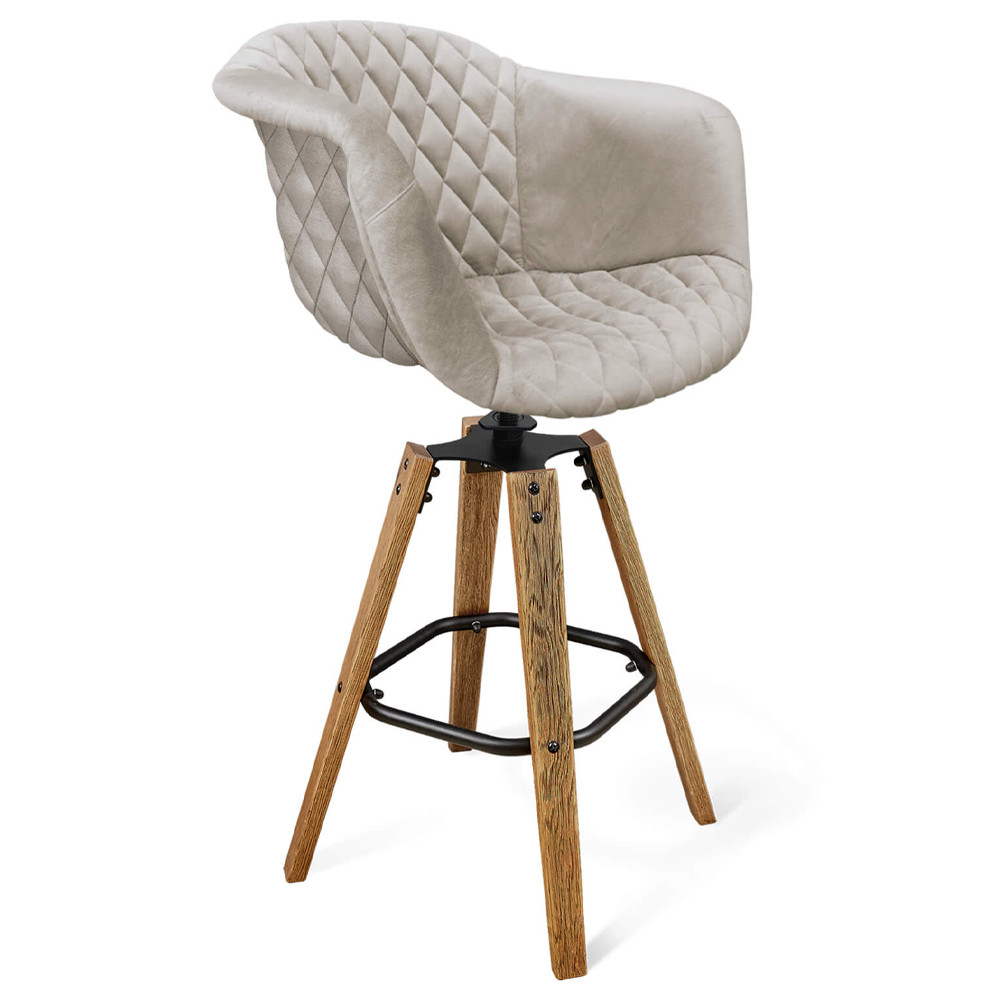 Барный стул со спинкой и мягкой обивкой с ромбами на 4-х деревянных ножках Бежевый Велюр Ava Charm