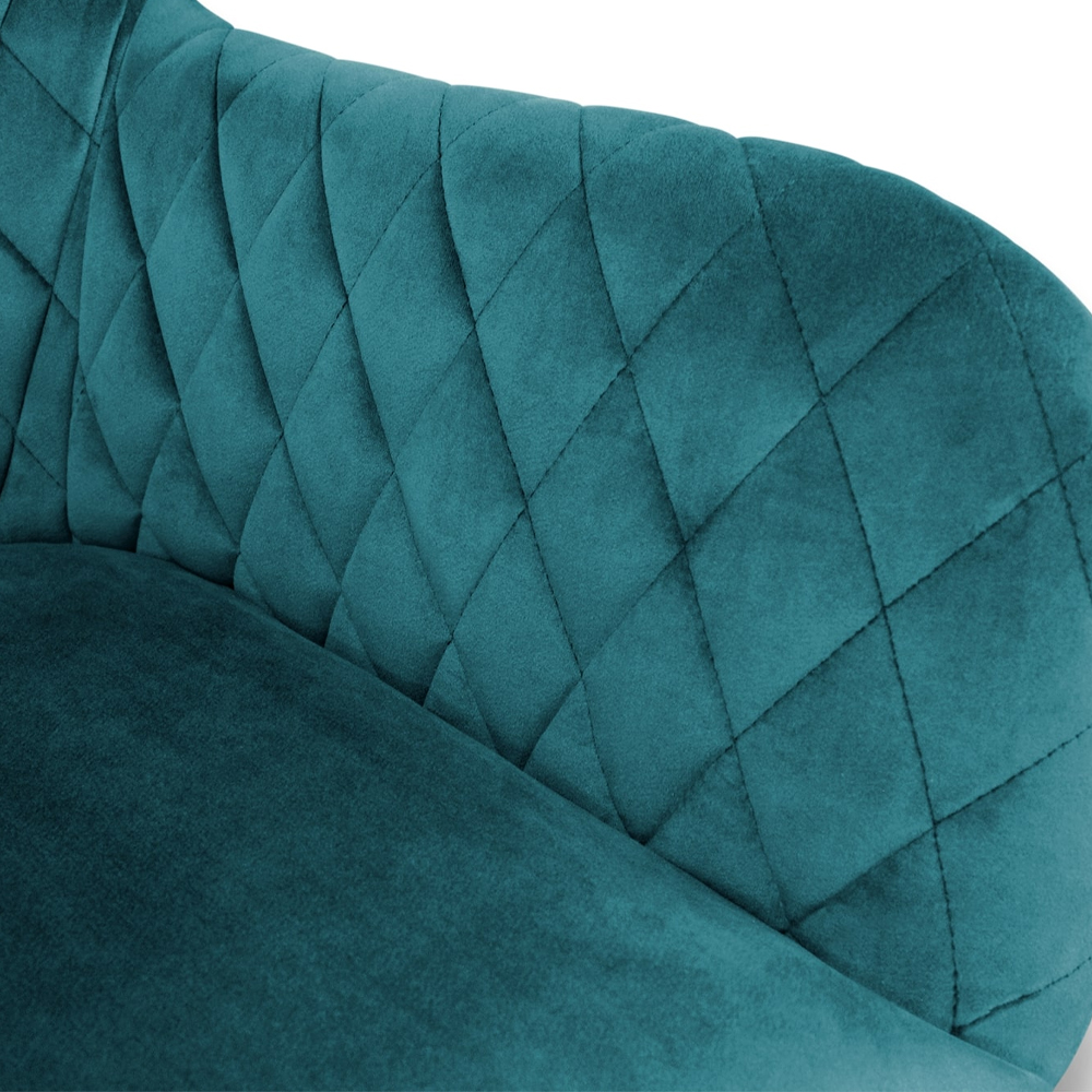 Барный стул со спинкой и подлокотниками на 4-х деревянных ножках Douglas Rhombus Бирюзовый Велюр