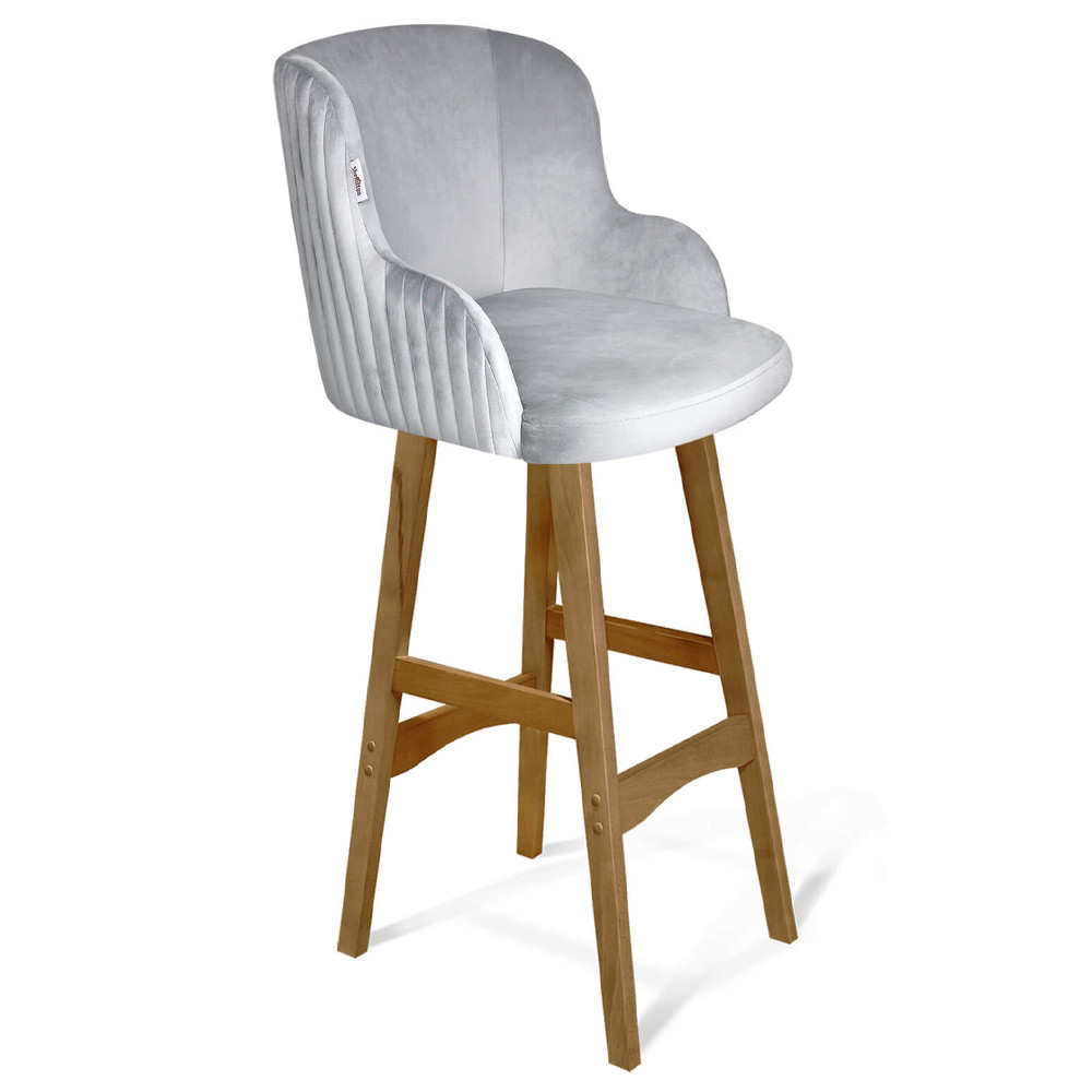 Барный стул со спинкой и подлокотниками на 4-х деревянных ножках Серый Велюр Ava Charm