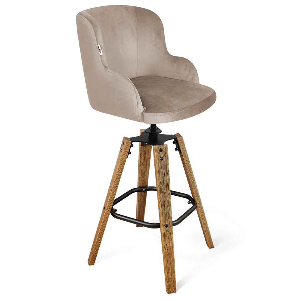 Барный стул со спинкой и подлокотниками на 4-х коричневых ножках Бежевый Велюр Ava Charm