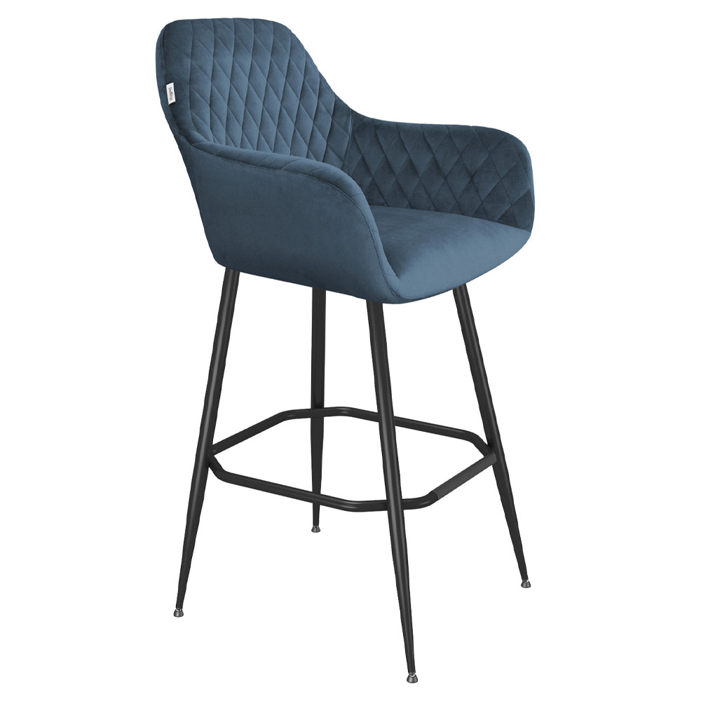 Барный стул со спинкой и подлокотниками на 4-х металлических ножках Douglas Rhombus Синий Велюр