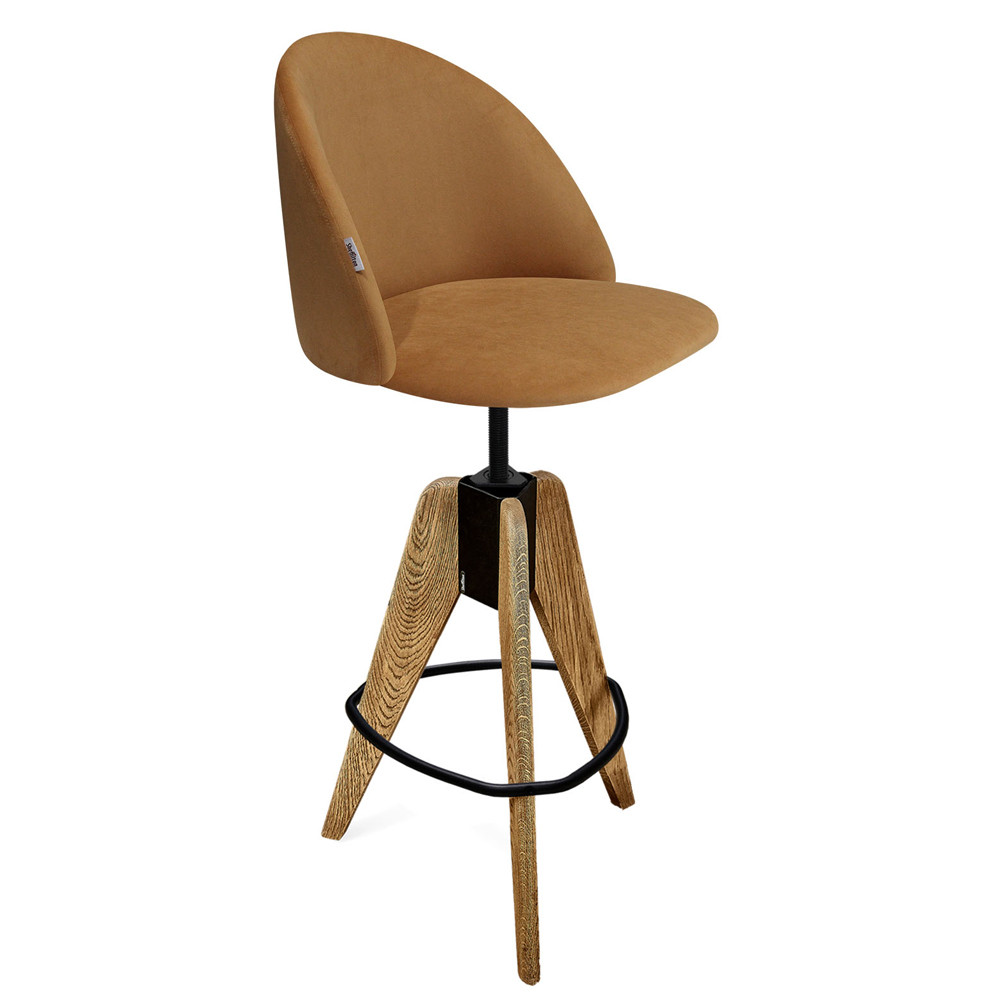 Барный стул со спинкой и металлической подставкой на 3-х деревянных ножках Горчичный Велюр Vendramin Chair
