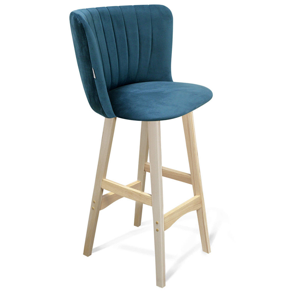 Барный стул со спинкой на 4-х деревянных ножках Синий Велюр Ava Charm