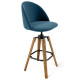 Барный стул со спинкой и металлической подставкой на 4-х деревянных ножках Синий Велюр Vendramin Chair