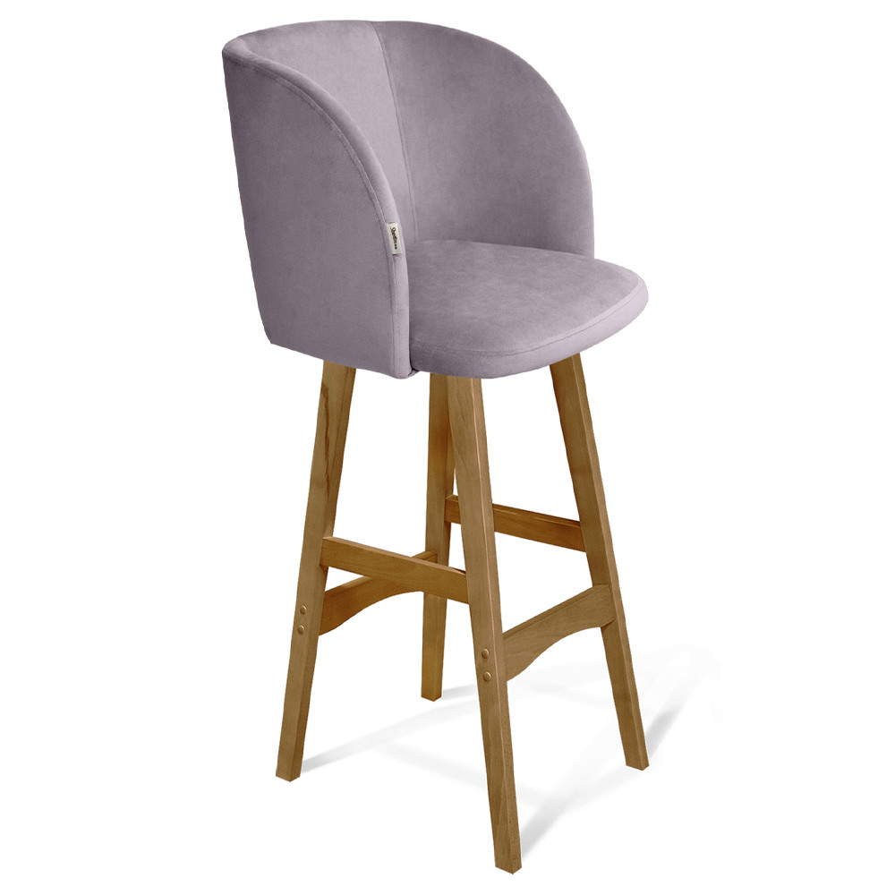 Барный стул со спинкой на 4-х деревянных ножках Сиреневый Велюр Ava Charm