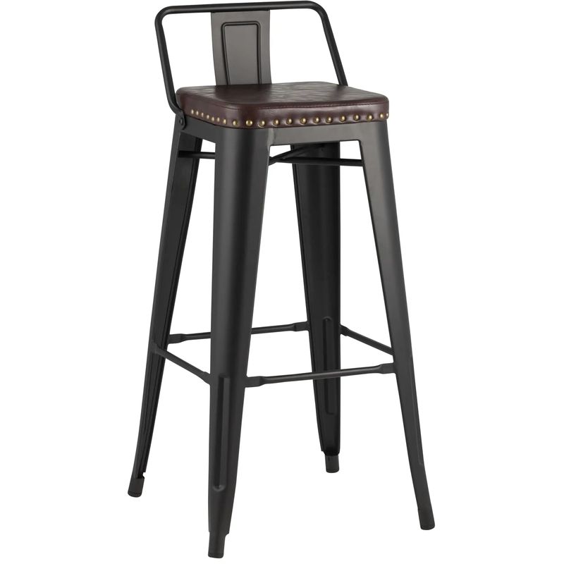 Барный Стул Tolix Черный Матовый Металл Сидение Коричневая Экокожа