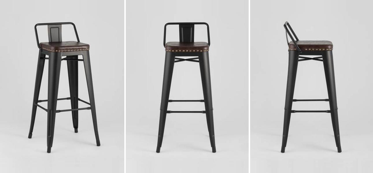 Купить барный Стул Tolix Черный Матовый Металл Сидение Коричневая Экокожа – это выбрать его за: