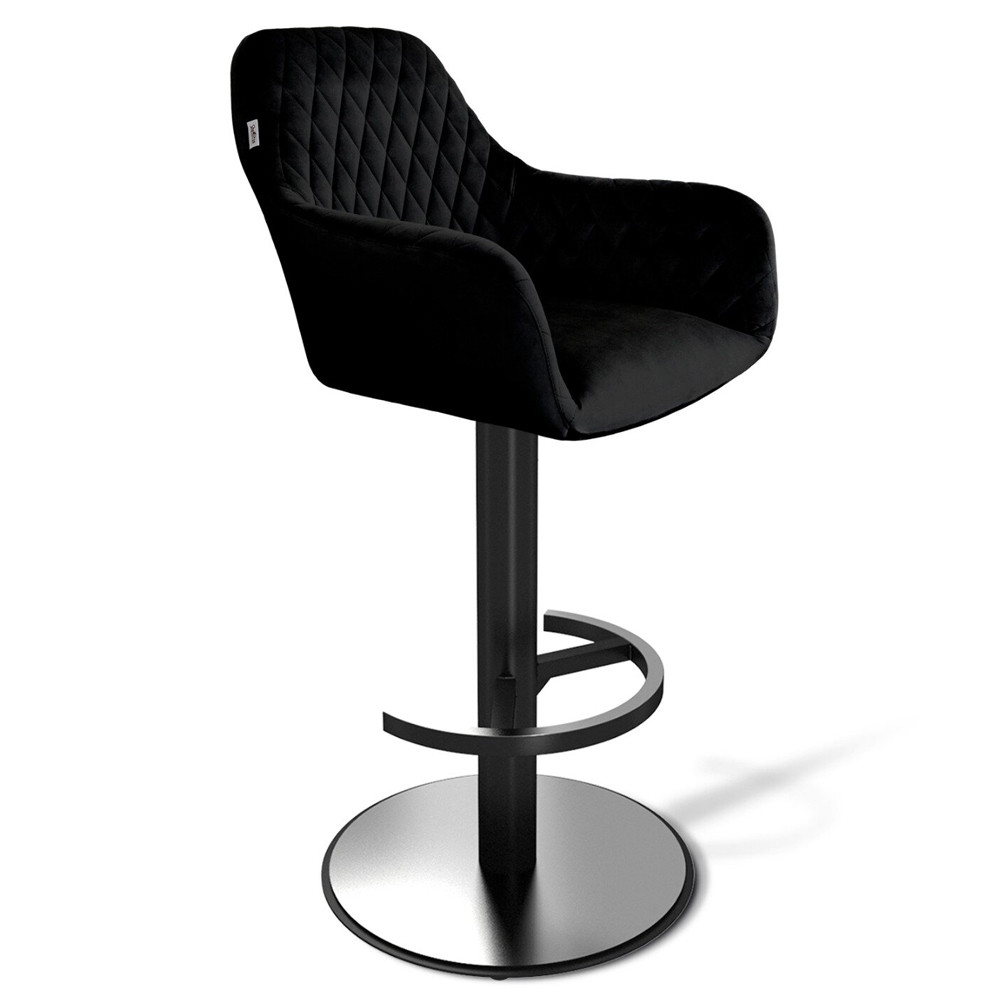 Барный стул вращающийся со спинкой и подлокотниками Douglas Rhombus Черный Велюр