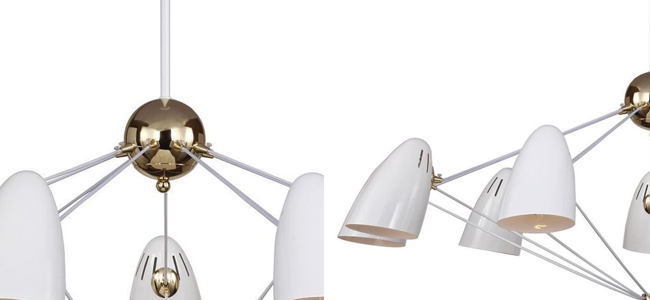 Дизайнерская люстра Retro Future – Белоснежное изделие с золотыми штрихами.