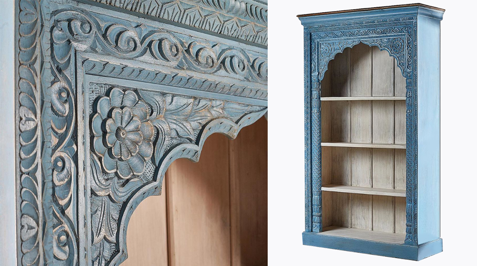 Купить Blue Mango III Rack Голубой Стеллаж с резным орнаментом – это выбрать изделие, которое выполнено из массива манго, а сама мебель производится вручную на фабриках Индонезии.