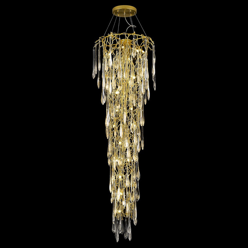 Большая вертикальная люстра Frozen drop Золотистая