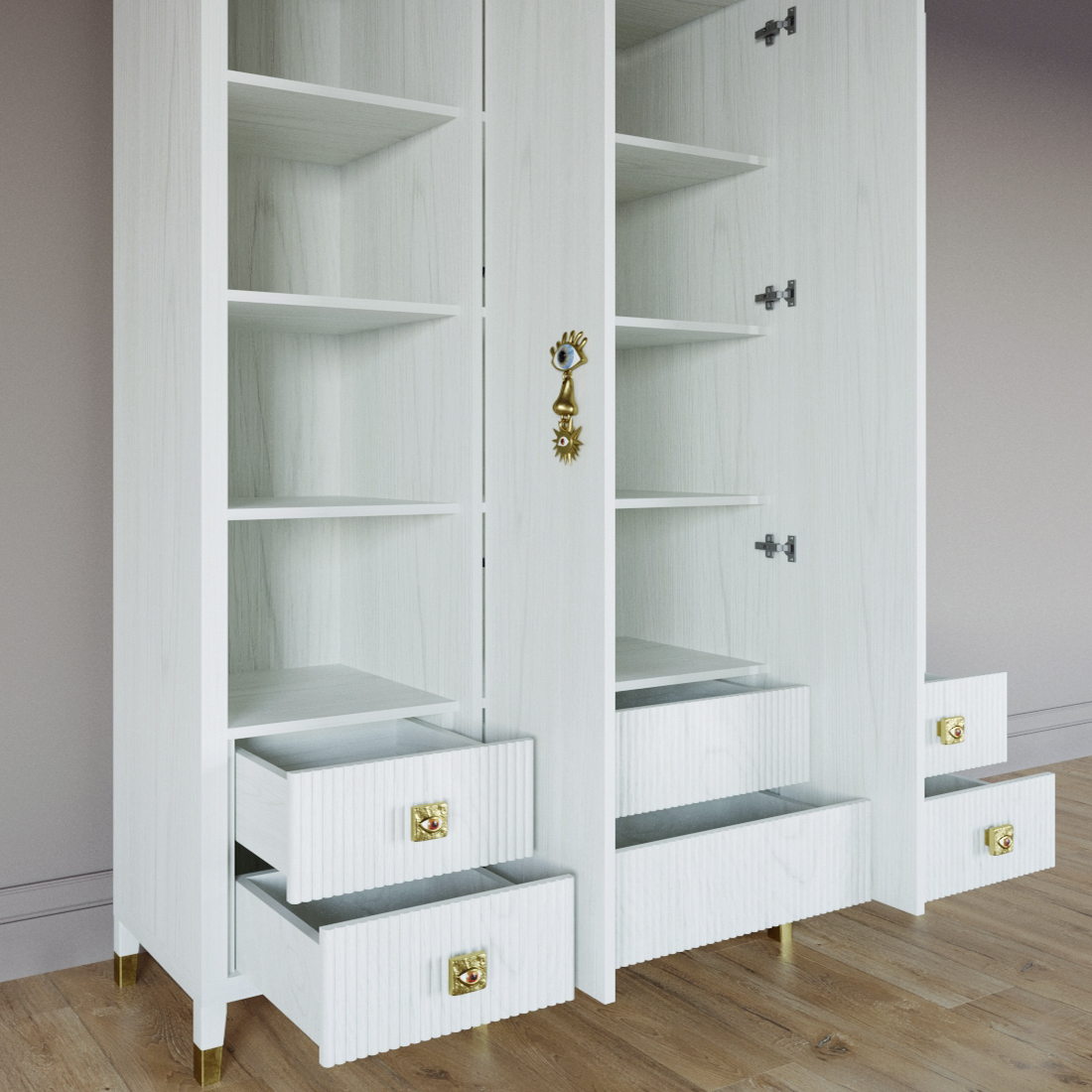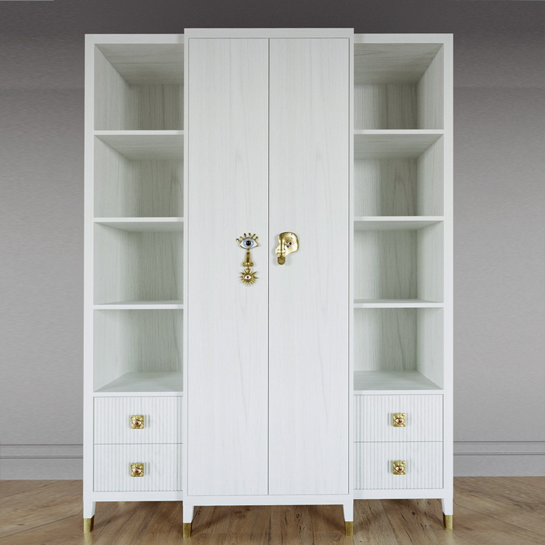 Большой шкаф с витриной Elsa Dreams White
