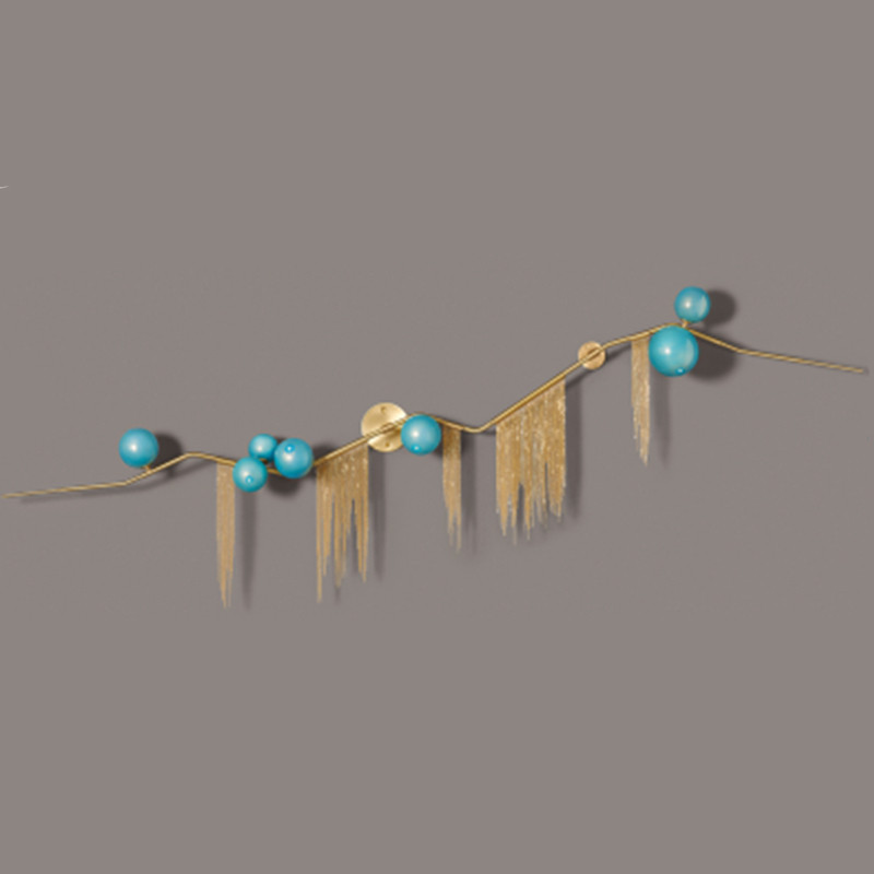 Светильник выполнен из высококачественных материалов – металла и стекла бирюзового оттенка. Его конструкция состоит из семи стеклянных шаров, расположенных на изогнутом металлическом основании. Каждый шар оснащен патроном типа G4, что позволяет использовать различные виды ламп, включая галогенные и светодиодные.