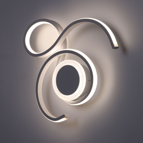 Бра белого цвета с изогнутыми световыми линиями и круглым основанием Luke Lampco Tracer Lamp
