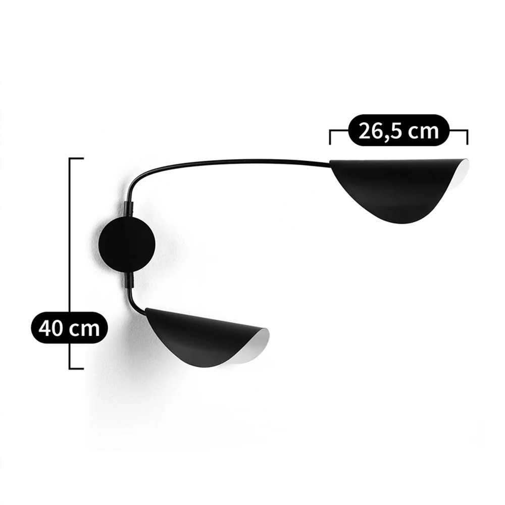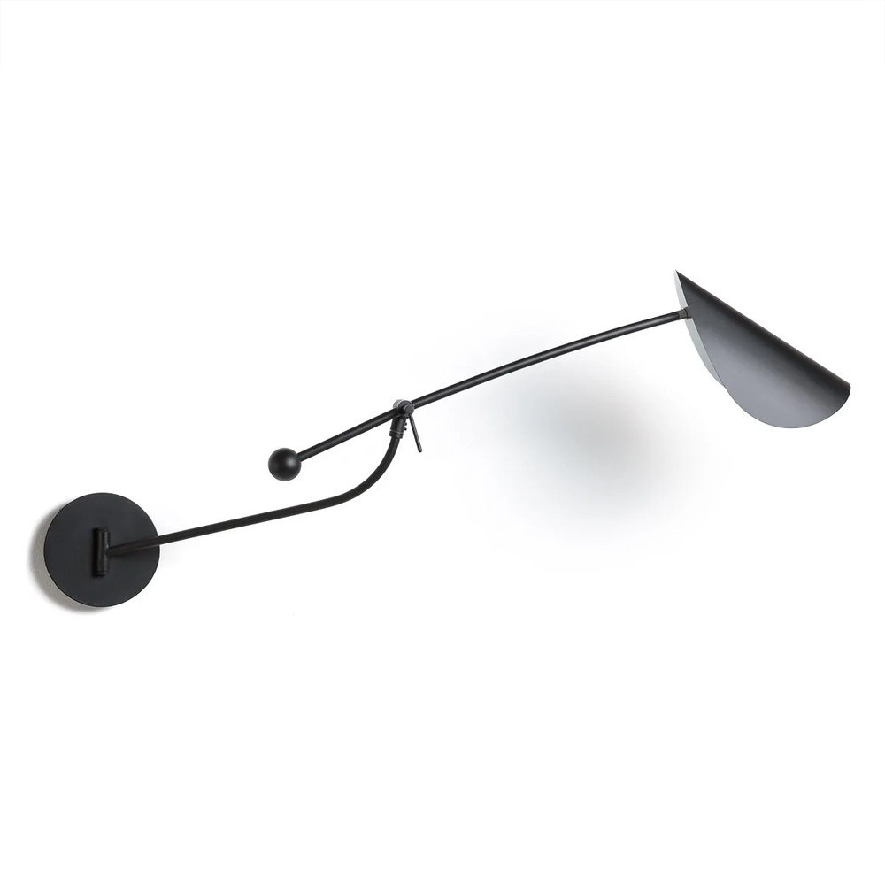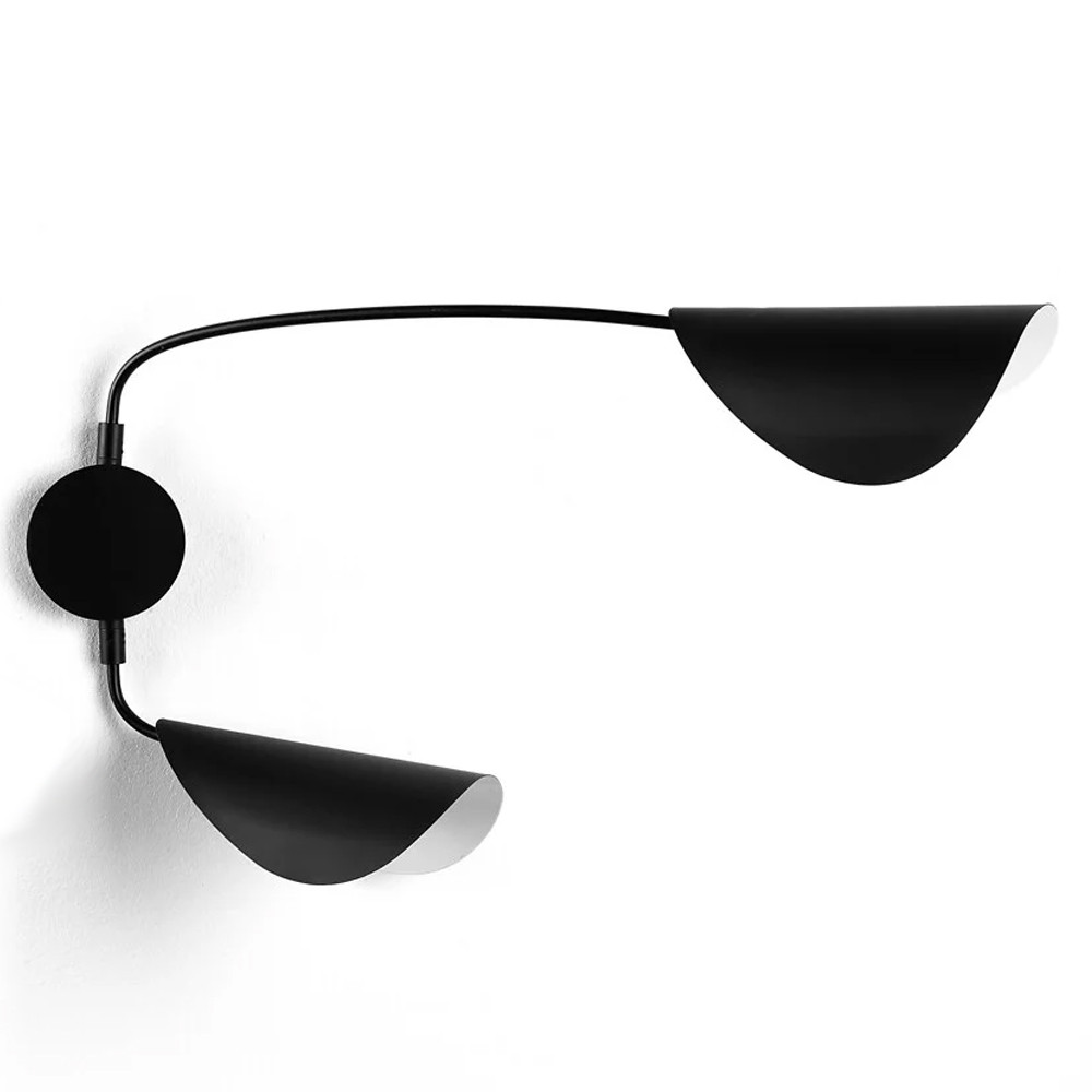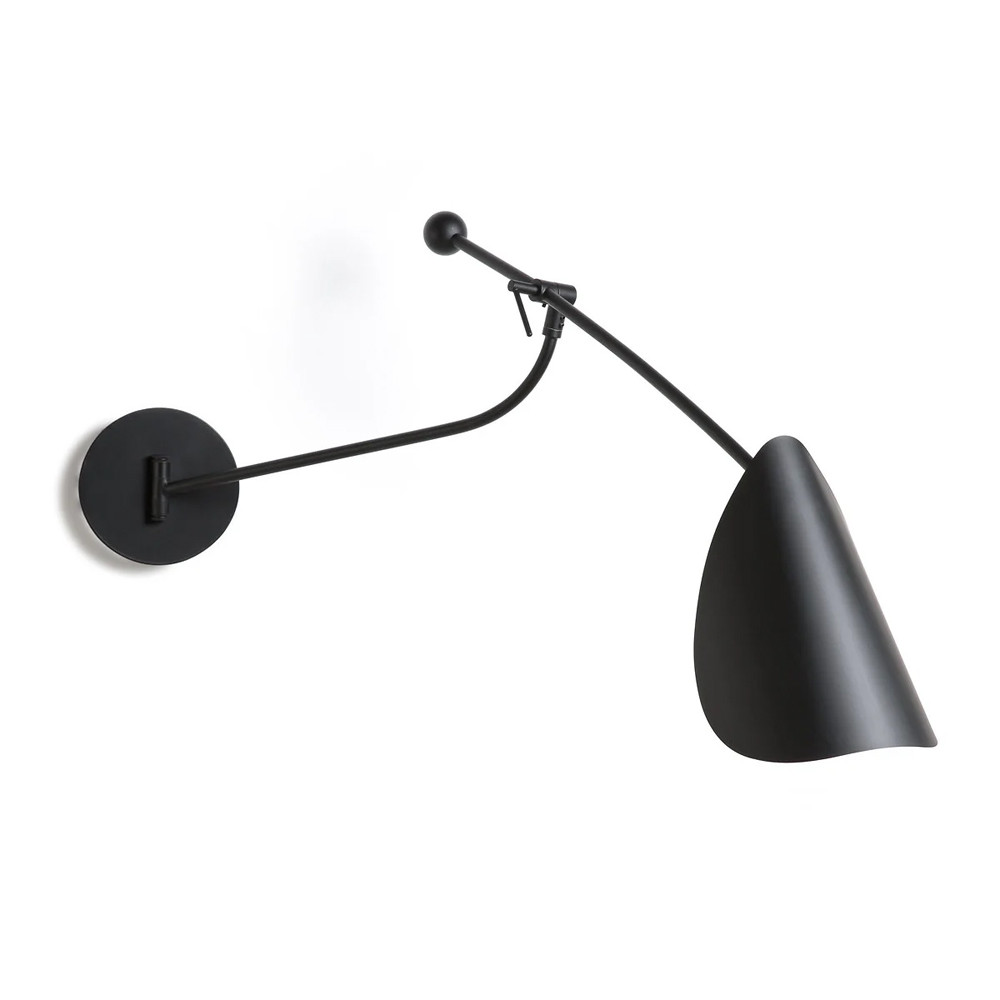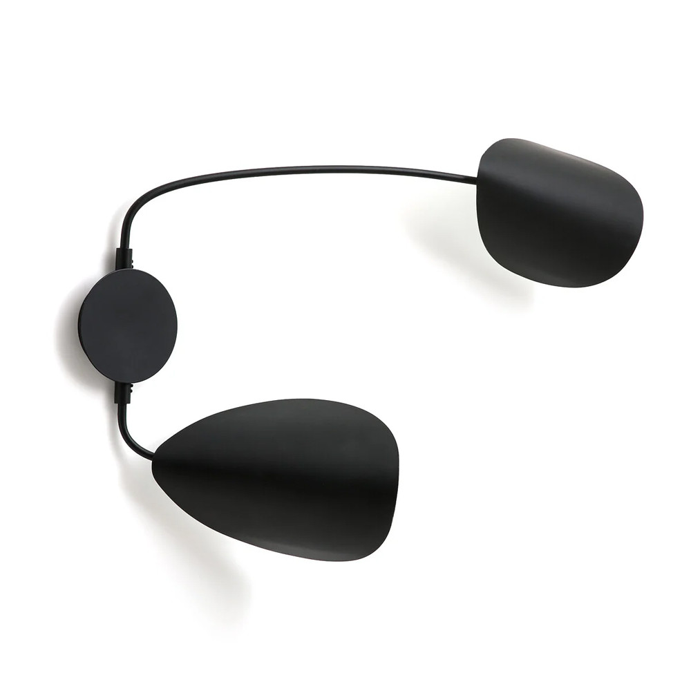 Тонкая и воздушная форма из черного матового металла, вдохновленная движением и природой. Вращающийся абажур в форме листа для направленного декоративного или художественного освещения с графическим эффектом.