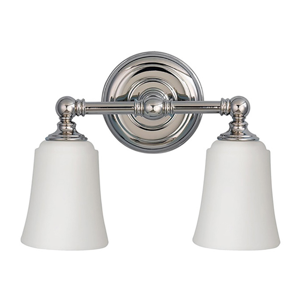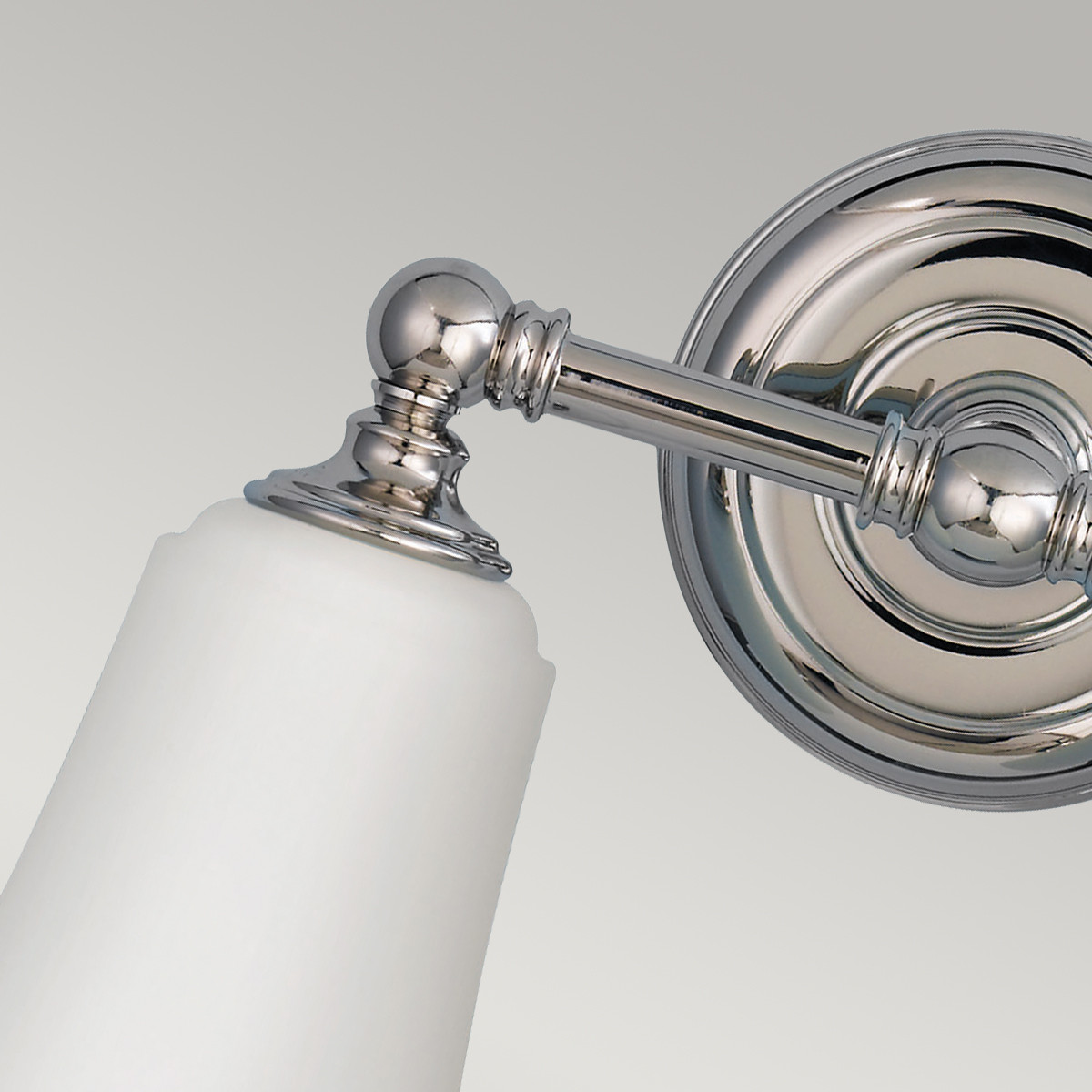 Бра для ванных комнат с 2-мя белыми плафонами в форме колокола на круглом основании цвета хром Feiss