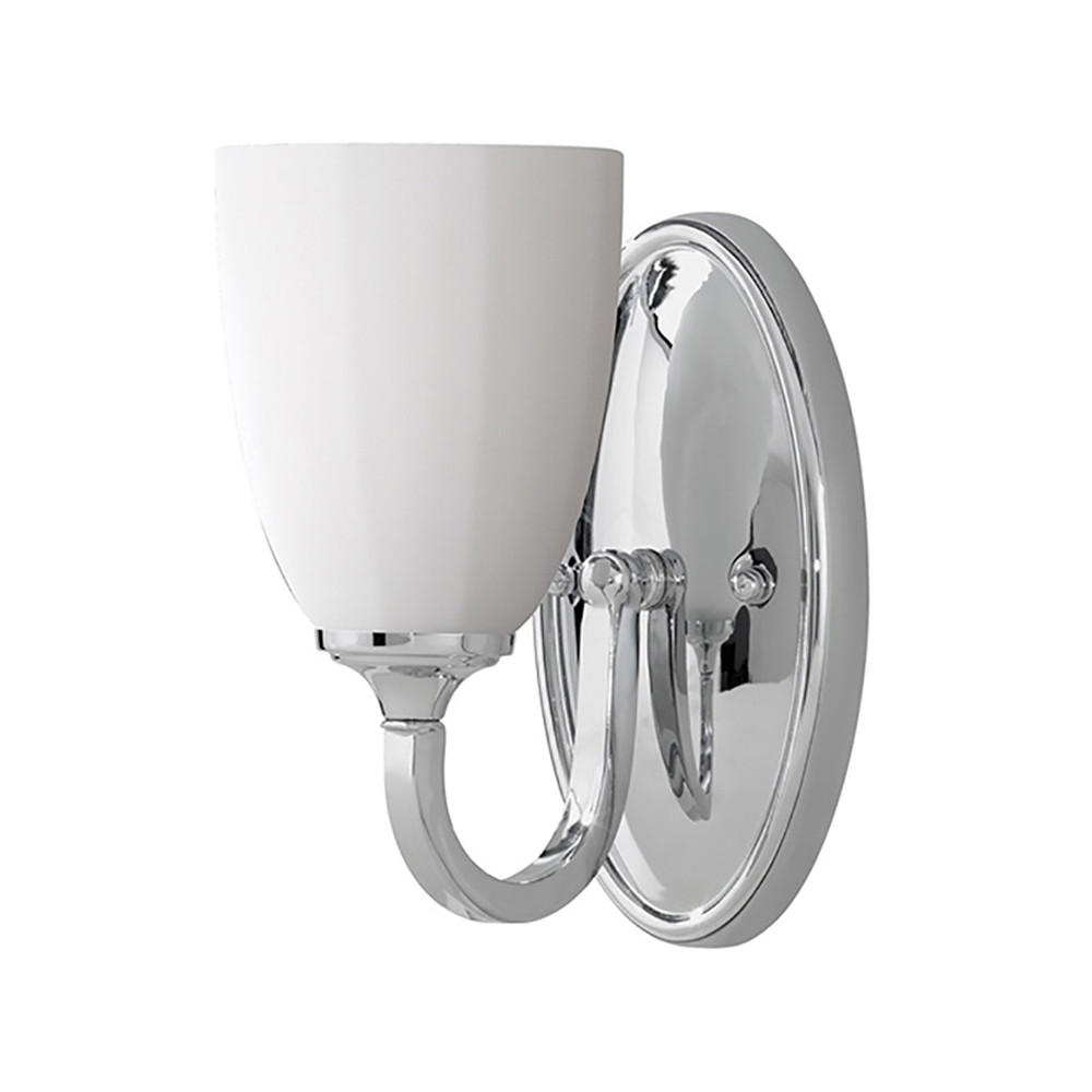 Бра для ванных комнат с белым стеклянным плафоном в форме бокала на овальном основании цвета хром с изогнутым держателем Feiss