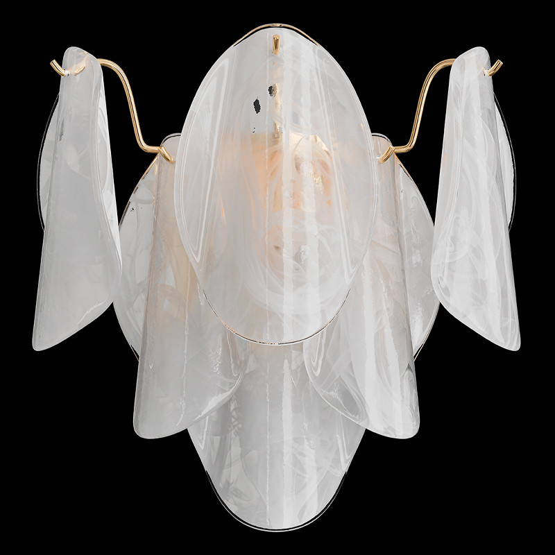 Бра из полупрозрачных овальных лепестков из стекла с металлическим основанием золотого цвета Nazaire Glass Lighting