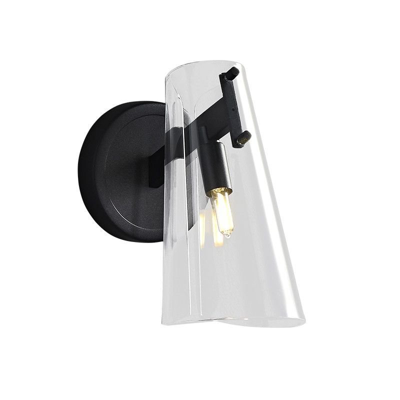Бра конусообразной формы из прозрачного акрила и черной стали Glass Cylinder Black