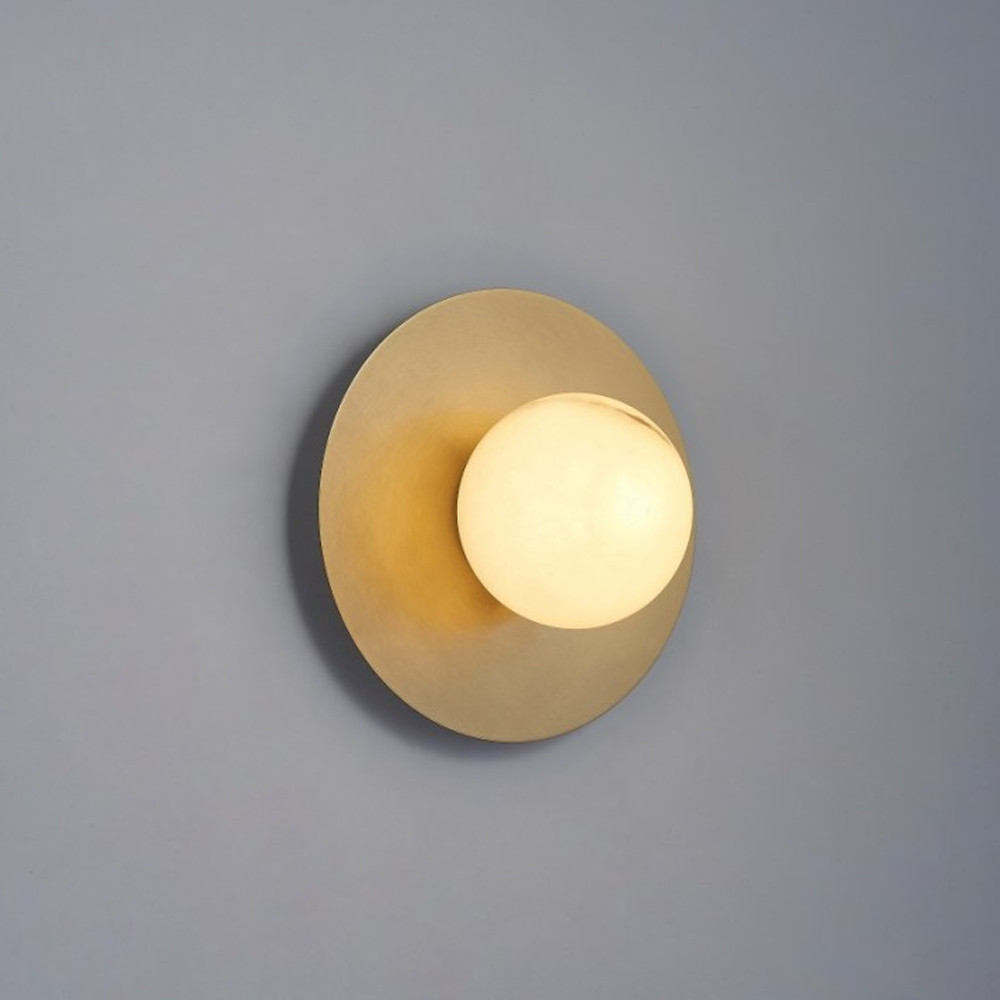 Бра круглое с плафоном из натурального камня на латунном основании Cryptocrystalline Stone