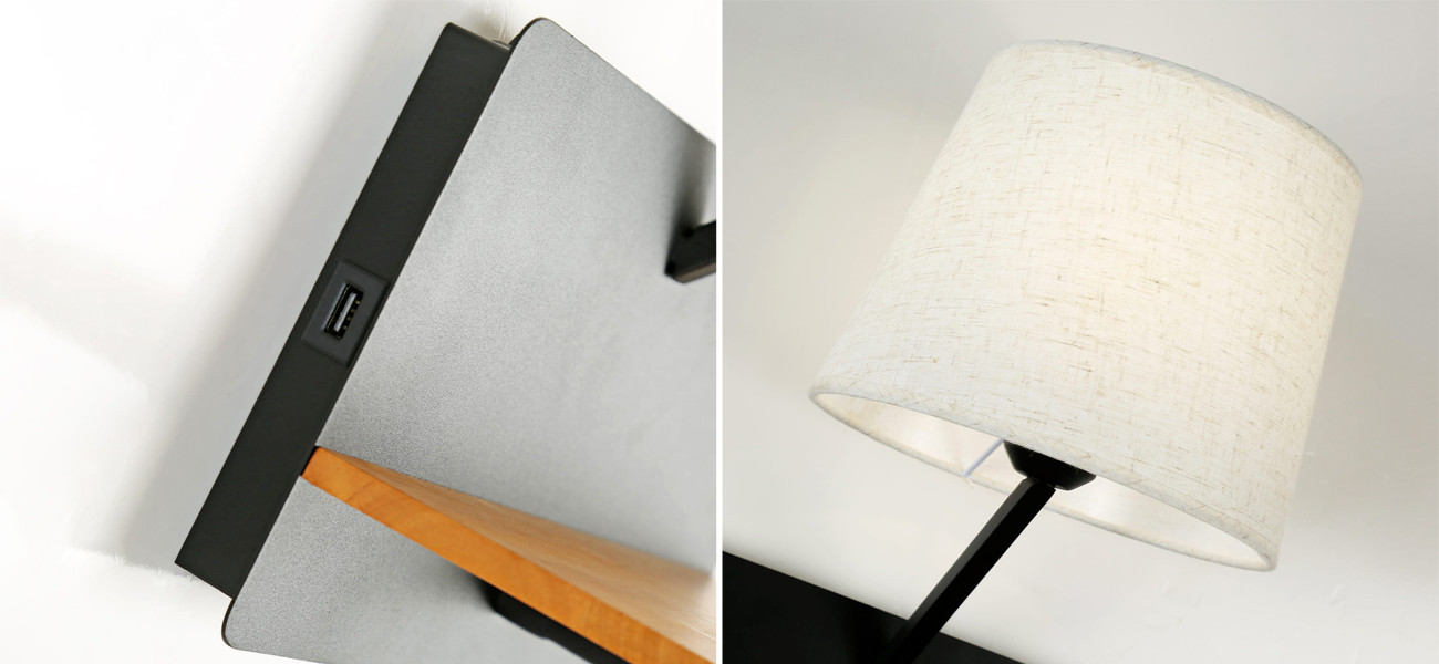 Бра с абажуром и гибким спотом Trumpet Wall Black USB