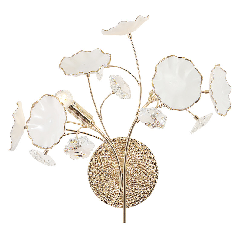 Бра с белыми лепестками из керамики и прозрачными хрустальными цветками Wintery flovers