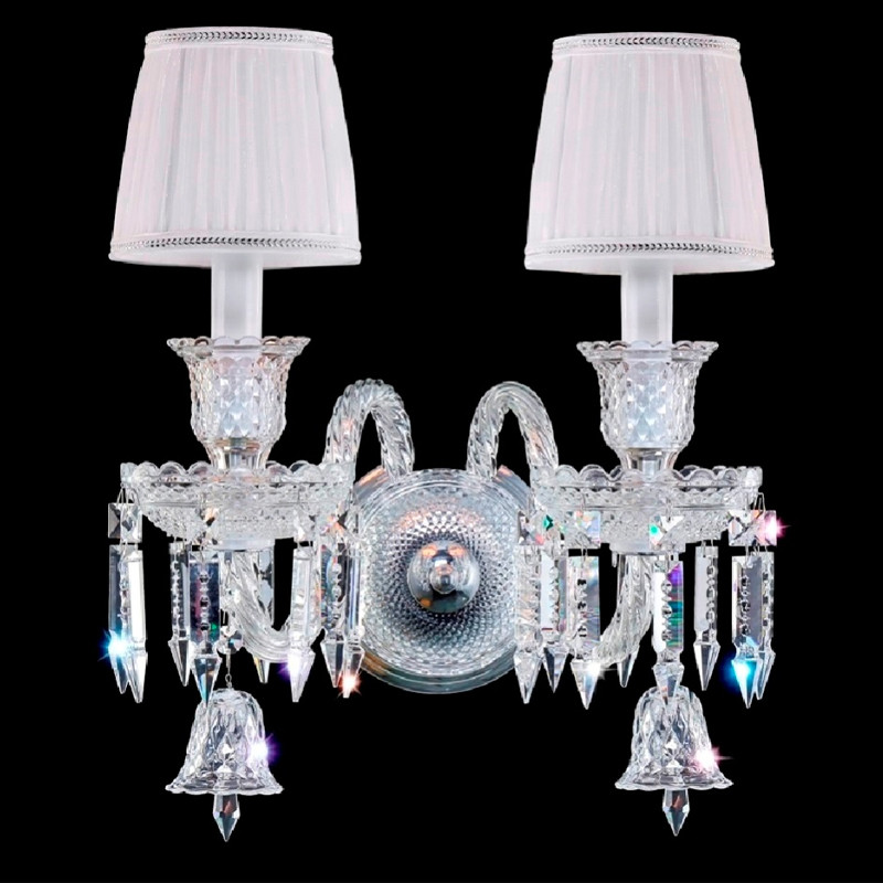 Бра с двумя белыми текстильными абажурами и хрустальными подвесками Lustre Reverie