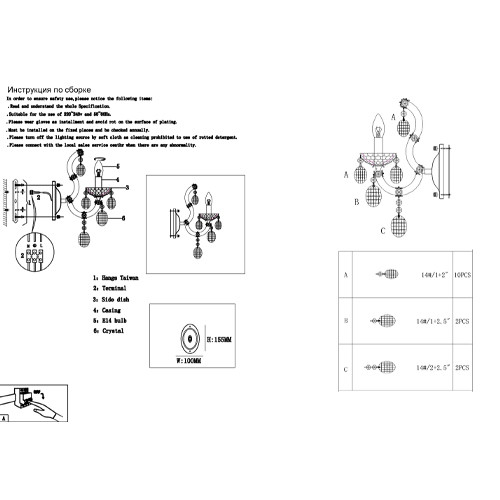 Бра с двумя лампами и крупными хрустальными подвесками на хромированном основании Crystal lamps