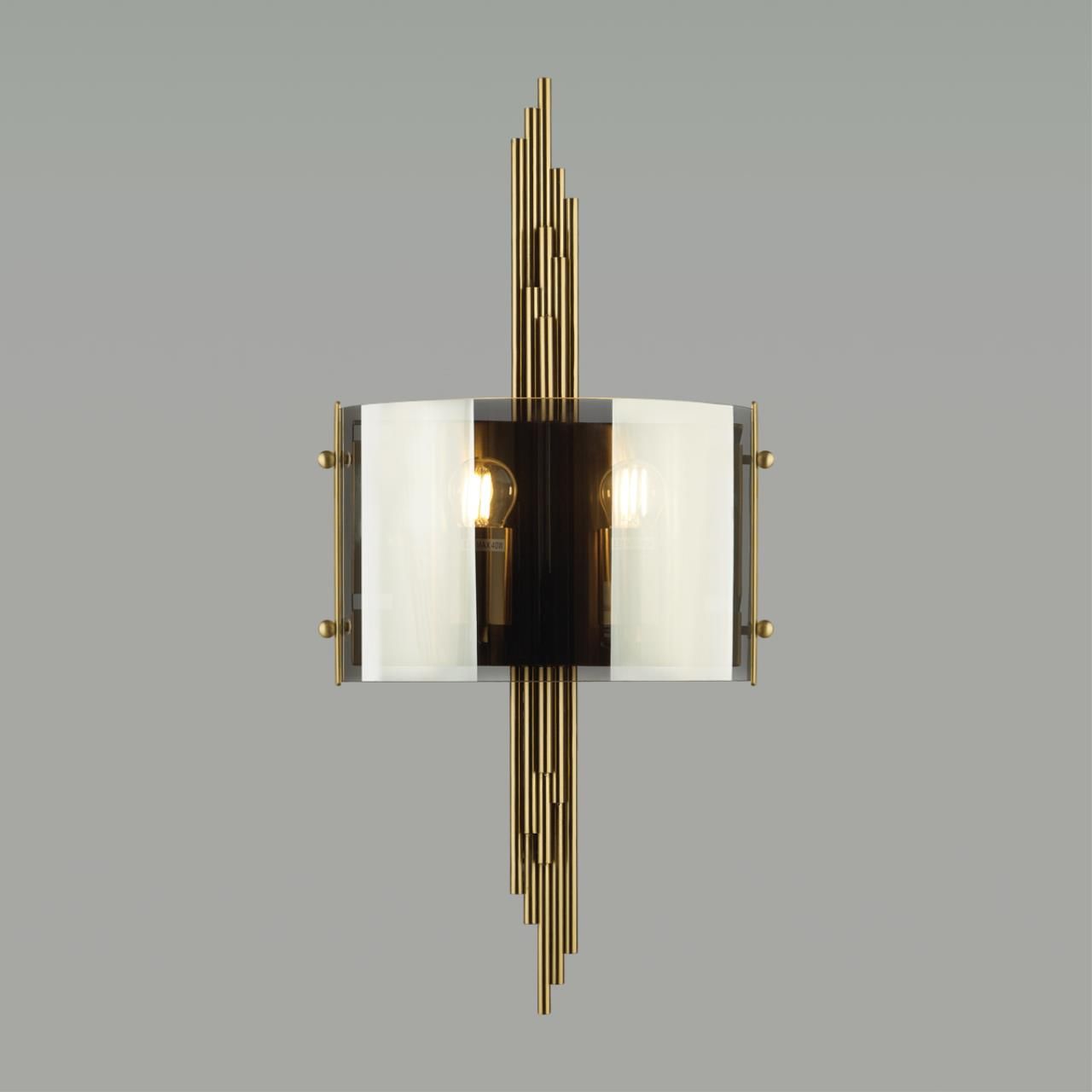 Бра с изогнутым плафоном на бронзовом основании с вертикальным декором из металлических трубок Sohne