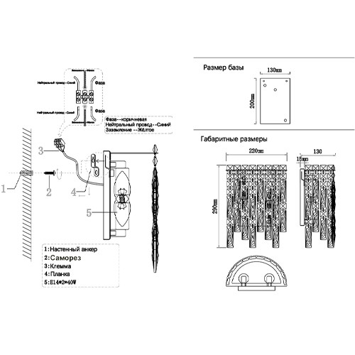 Бра с хрустальными подвесками прозрачного цвета Хром Ludivine Lighting