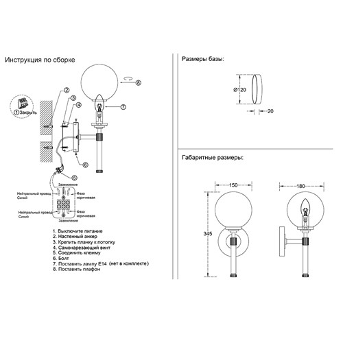 Бра с белым стеклянным плафоном в форме шара Cedar & Moss Light