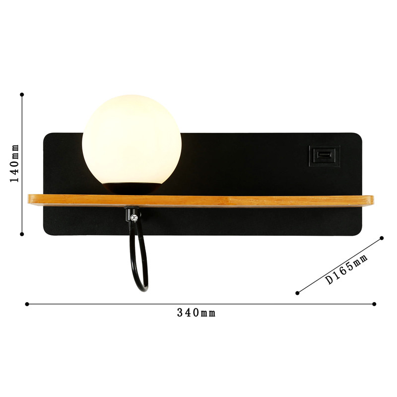 Бра с полкой Black GAVIN WOOD USB