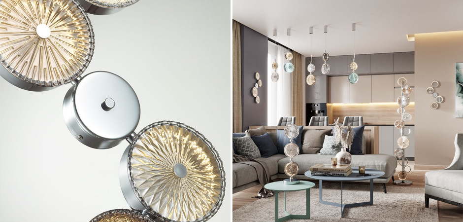 Бра с рельефным стеклом Glass Peonies Maxi Хром