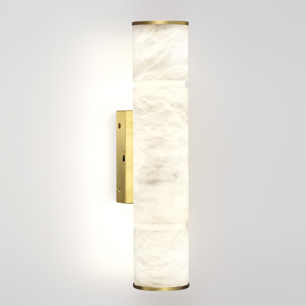 Бра с цилиндрическим плафоном из белого алебастра на прямоугольном основании Латунь Cryptocrystalline Stone