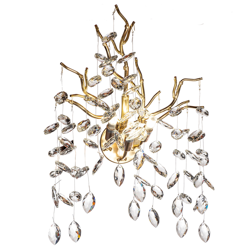 Бра с ветвистым каркасом и стеклянными подвесами цвет золото Golden Leaf Fall