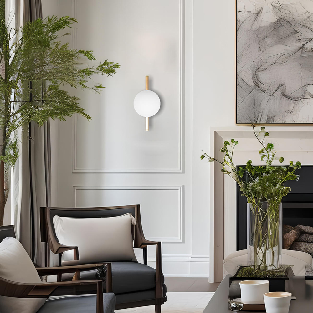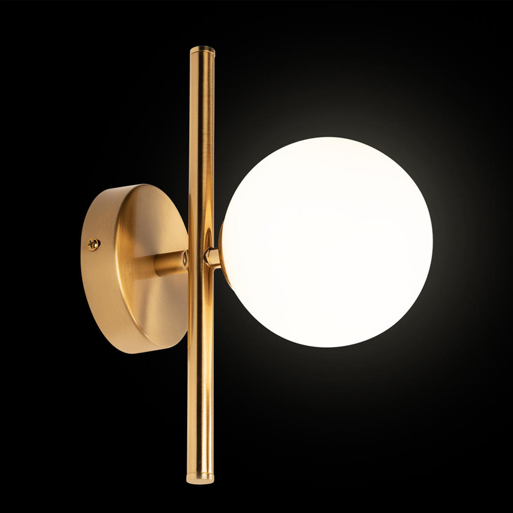 Бра с золотым основанием и белым плафоном в форме шара Bubble